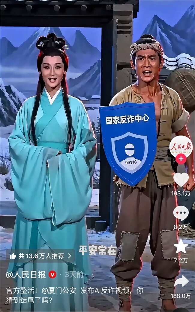 值得关注的是,这一创作热潮并未止步于趣味表达,而是快速向政务科普、文旅宣传、公益传播等领域延伸,成为贴近群众、传递信息的新载体。3 月 16 日,厦门公安发布借助该技术制作的 AI 反诈主题视频,得到人民日报、央视新闻等主流媒体转发,相关热度持续攀升,人民日报抖音号互动量超400万。
