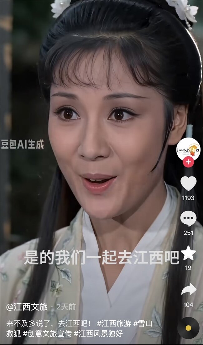 此外,江西文旅、甘肃文旅等地方文旅部门,结合当地自然景观与人文底蕴,用豆包 Seedance 2.0 制作宣传视频,以这一年轻化的表达形式吸引旅游消费群体;北京大学也借助该创作形式,推出校园食堂相关宣传内容。AI创作技术正在以多元的姿态融入社会生活方方面面,为不同领域的内容传播注入活力。