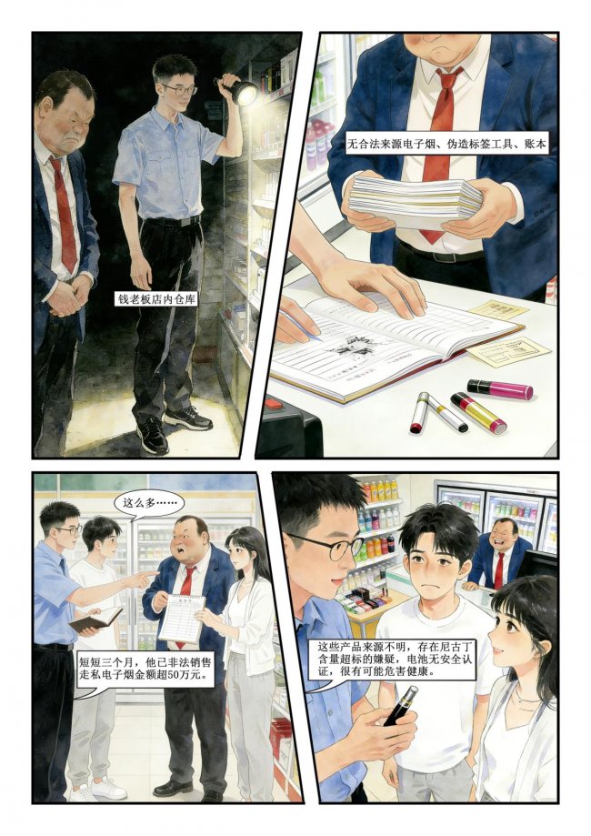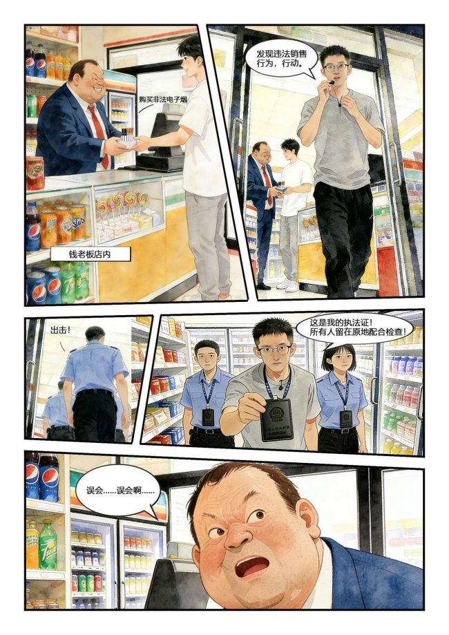 仓库内,走私电子烟、伪造标签工具、账本……证据摆在眼前。悦言队长向小林和小美说明,钱老板的行为已涉嫌违法。