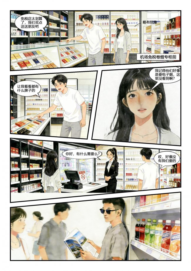 机场免税店内,小林和小美想购买电子烟送朋友,却在柜台前发现并无相关商品。角落里,悦言队长正默默观察——他盯上的,不是柜台内的合法交易,而是店外暗藏的违法交易。