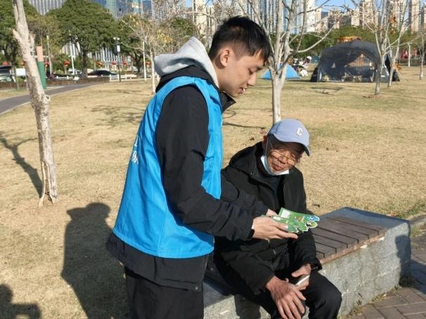 图为:阳光学院人工智能学院志愿者为老年群众普及闽江禁渔相关知识。