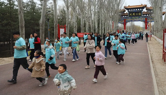百余名跑友身着统一蓝色服装有序集结,为春日公园增添一抹亮色。随着开跑令响起,参与者沿指定路线活力出发,在亲近自然中完成乐跑打卡,以健康行动传递护眼理念。