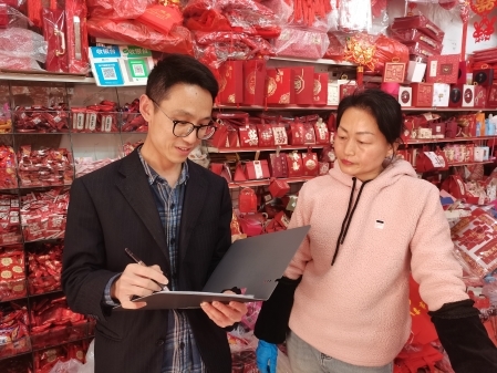 图为客户经理(左一)开展市场调研,把脉消费需求