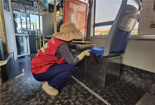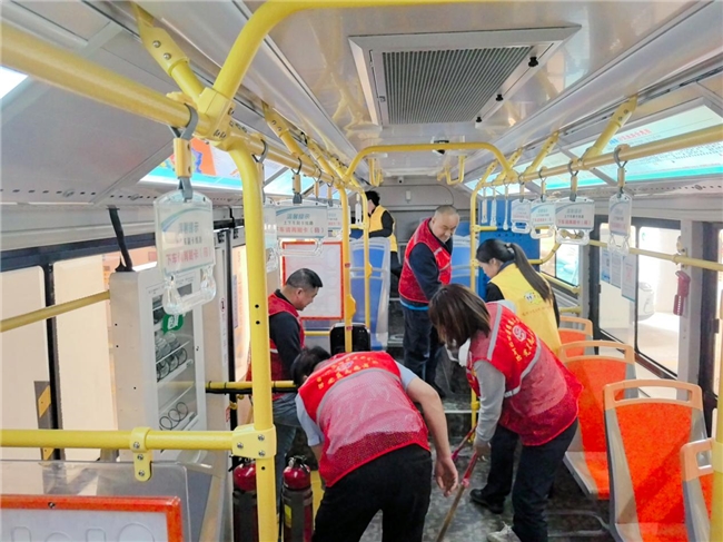本次清洁行动对标“满分巴士”标准化要求,以“全覆盖、无死角、清根源、提品质”为原则,聚焦车厢卫生薄弱环节和乘客高频接触区域开展深度清洁。党员志愿者带头引领,志愿者队伍分工协作,对车厢座椅、扶手、车窗等易接触部位细致擦拭,对地板全面清扫消杀,还针对空调出风口、驾驶室操作台等易积尘区域深度清理,从源头去除异味、消除卫生隐患,让运营车辆焕然一新。