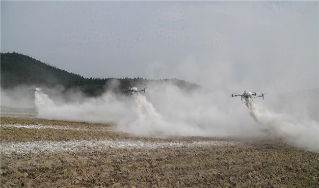 “几架无人机齐头并进,生石灰均匀铺撒,这要是换上植保防治药物,效果肯定好。”桂阳县浩塘镇“菖蒲脐橙”负责人周新俊介绍道,“以前我们叶面施肥,最开始全靠手持喷洒,后来应用到无人机,也是单打独斗,总有漏撒的果树,这种集群化的作业模式,正好解决这一问题。”