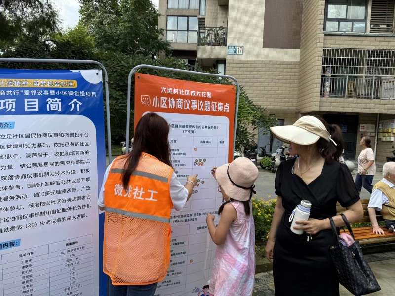 大运村社区成立于 2024 年 1 月,常住人口超 2.7 万人,是集高校、老旧院落、商业步行街于一体的综合性社区。成立之初,社区治理难题重重:居民 “等靠要” 思想普遍,遇到小区门头破旧、绿地杂乱等问题,第一反应是找社区 “两委”;协商议事缺方法、缺平台,非机动车乱停放、公共设施维护等问题常因意见不合久拖不决;儿童缺活动场地、老年人活动中心简陋等民生痛点突出,邻里互动少、陌生感强。