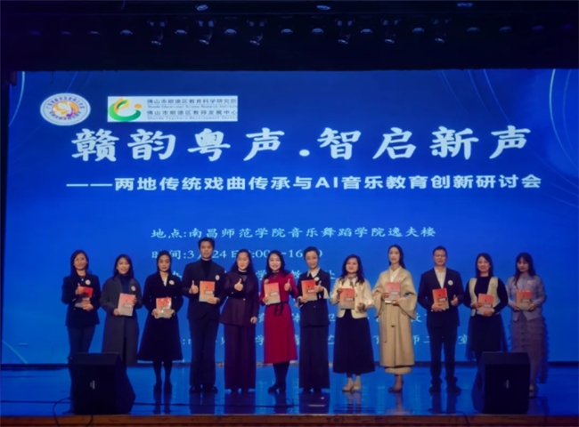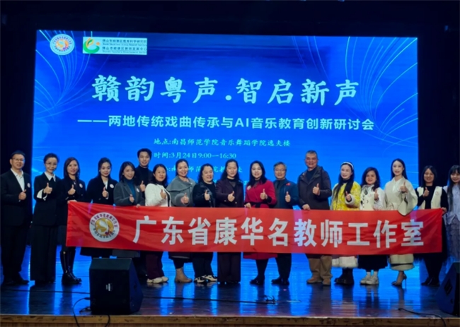 2026年3月24日,“赣韵粤声 智启新声——赣粤两地传统戏曲传承与AI音乐教育创新研讨暨康华名教师工作室研修活动”在南昌师范学院顺利举办。本次活动由南昌师范学院、南昌市教育局体育卫生与艺术教育科、广东省康华名教师工作室联合主办,吸引赣粤两地近300名骨干教师及南昌师范学院实习生、在校师生共同参与,围绕人工智能时代背景下传统美育的创新传承路径开展深入研讨与交流。
