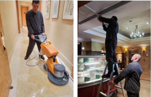 二是抓实公区卫生,擦亮酒店整体形象。针对大堂、走廊、电梯、卫生间等公共区域,酒店实施分区包干、动态保洁机制。大堂每日早中晚三次全面清扫,及时清理地面纸屑、水渍、杂物,定时擦拭前台台面、沙发座椅、玻璃门窗,保持公区整洁明亮;楼层走廊与电梯轿厢每小时巡查保洁,重点清洁扶手、按键、墙面污渍,定期进行空气消杀与通风换气;公区卫生间实行专人值守、随脏随清,确保洗手台、镜面、地面干爽洁净,纸巾、洗手液等物资充足补给。此外,加强绿植养护与垃圾清运,做到公区无异味、无杂物、无积水,全面提升宾客入店第一观感。