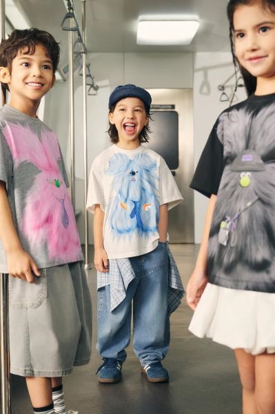 产品矩阵的拓宽同样是本季的亮点之一。全新推出的“mini woobaby”系列聚焦80-110cm码段,以更柔软的材质与充满趣味的细节设计,陪伴更多孩子从“小”到“大”。与此同时,品牌正式发布2026全球艺术家联名系列。首波合作牵手艺术家奥栗,将其笔下的小熊奥力(Oli Bear)与品牌怪趣美学深度融合,展现出 woobaby在艺术跨界领域的长期探索与野心。