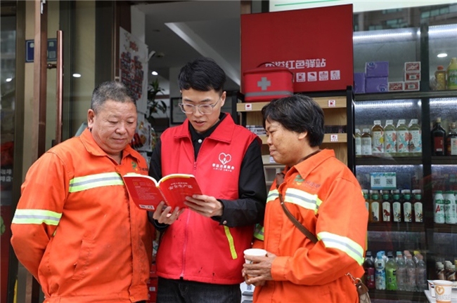 在城市的大街小巷,环卫工人、外卖骑手、快递小哥等户外劳动者穿梭忙碌,用汗水守护着城市的运转。为持续传递法治温度,让普法宣传更贴民心,该局组织“香溢”志愿者走进辖区“香溢红色驿站”,将普法课堂搬到驿站一角,趁着外卖骑手们等单的间隙、环卫工人们歇脚的空当,“香溢”志愿者们主动迎上前,用拉家常的方式讲起法律知识——送餐途中出事故怎么办、买到假货该如何维权、货物堆放占用消防通道有什么隐患与法律责任……“香溢”志愿者们把法律条文变成“大白话”,把维权知识编成“小贴士”,让户外劳动者们在喝口水、歇歇脚的间隙,就能把“法治干货”装进心里。