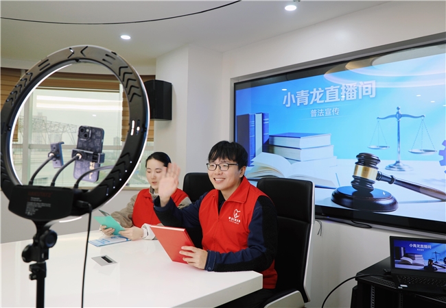 图为“香溢”志愿者通过线上直播开展普法宣传。黄贝妮 摄