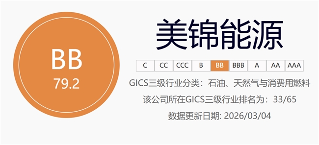社会维度亮眼,责任担当凸显。华证指数2026年3月4日数据显示,美锦能源整体评级为BB级,其中社会维度(S)获评A级,在65家GICS三级行业公司中排名第5。公司在人力资本发展、员工关怀、社会公益等方面的持续投入,既筑牢了企业发展的人才根基,也以实际行动践行了社会责任,赢得市场广泛认可。