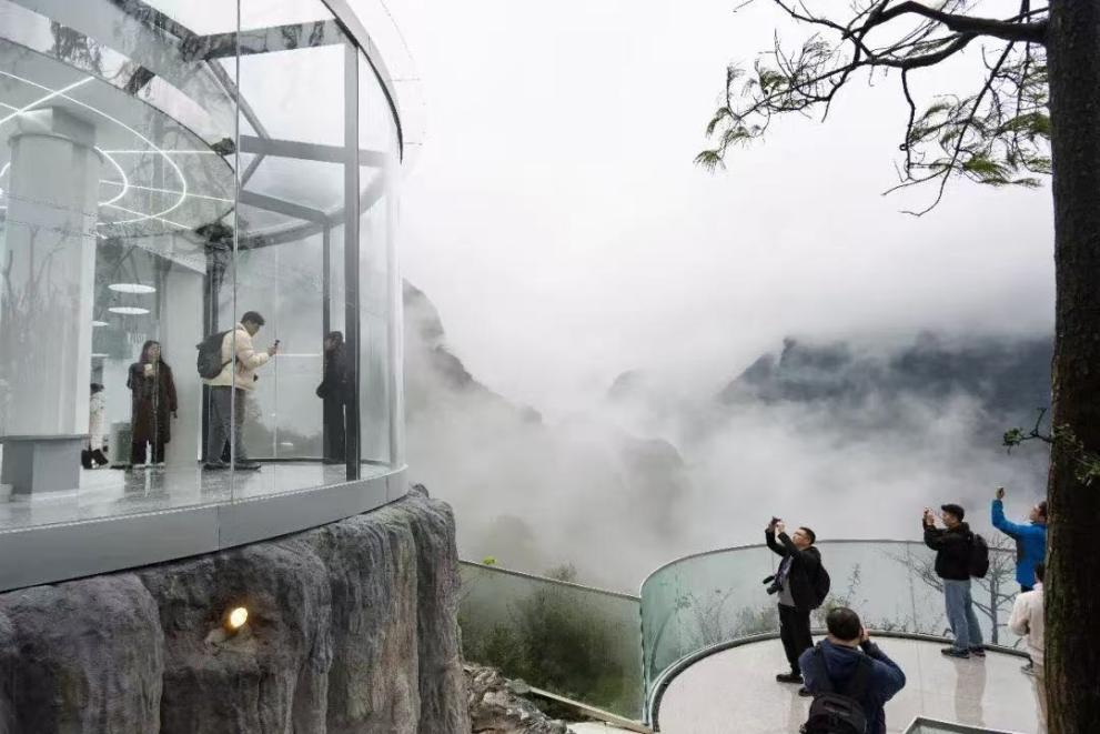 六小龙503AI咖啡馆是全国首个悬崖场景+人工智能深度融合的智慧文旅空间。游客可以坐拥270度武陵山大裂谷自然风貌全景,还可以让双臂机器人以0.1mm亚毫米级精度制作咖啡;空间融合了数十项全国领先的科技,为游客提供可参观、可体验的文旅消费新场景。六小龙503AI咖啡馆是AI赋能绿水青山的生动实践,以数字文明传承千年地质文脉,将前沿科技与壮丽山水、地域文化巧妙相融,为山区智慧服务提供了可复制的“新样本”;这不仅是东西协作的魅力窗口,更是重庆涪陵区大力发展战略性新兴产业、高技术产业、绿色环保产业、现代服务业的案例缩影。