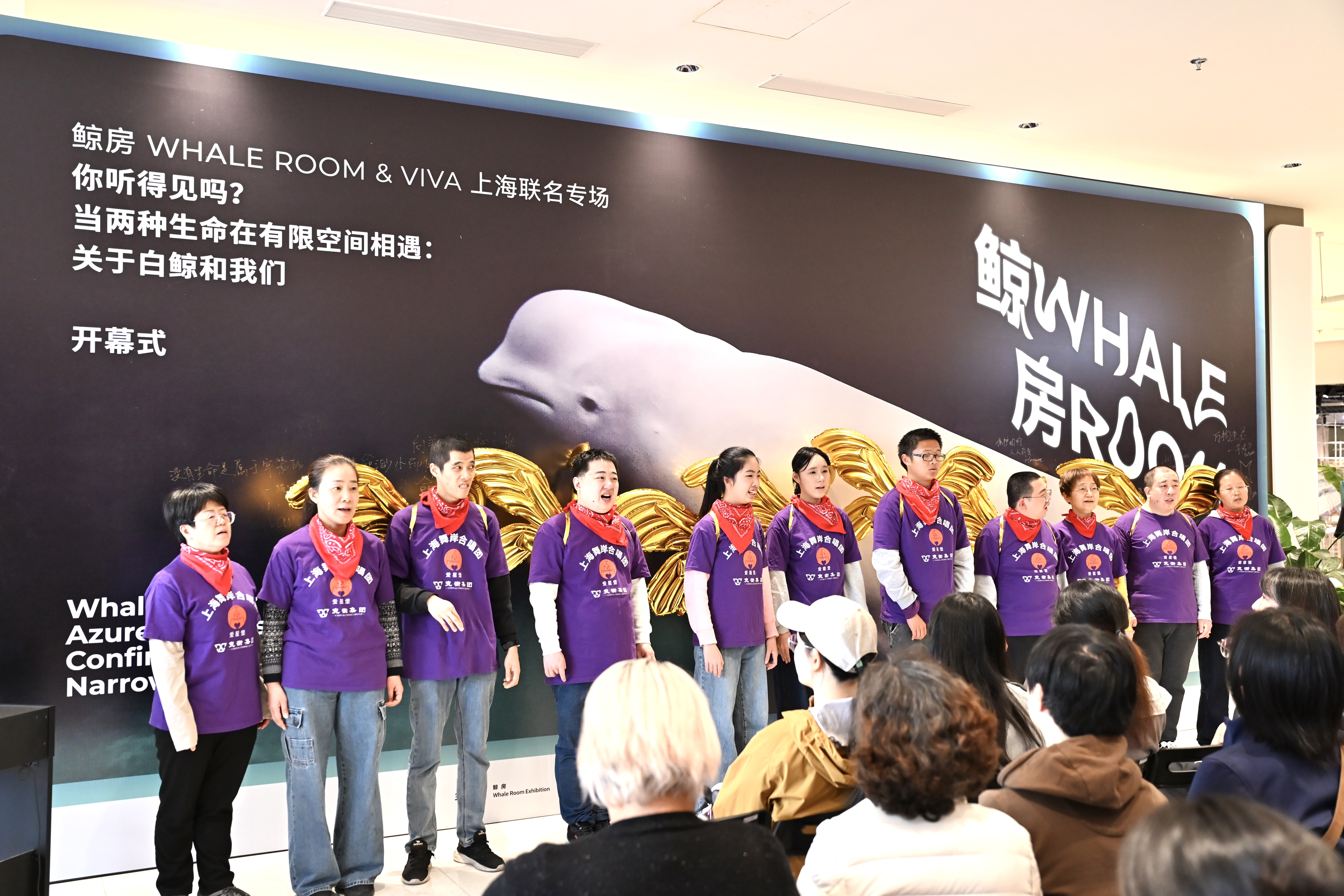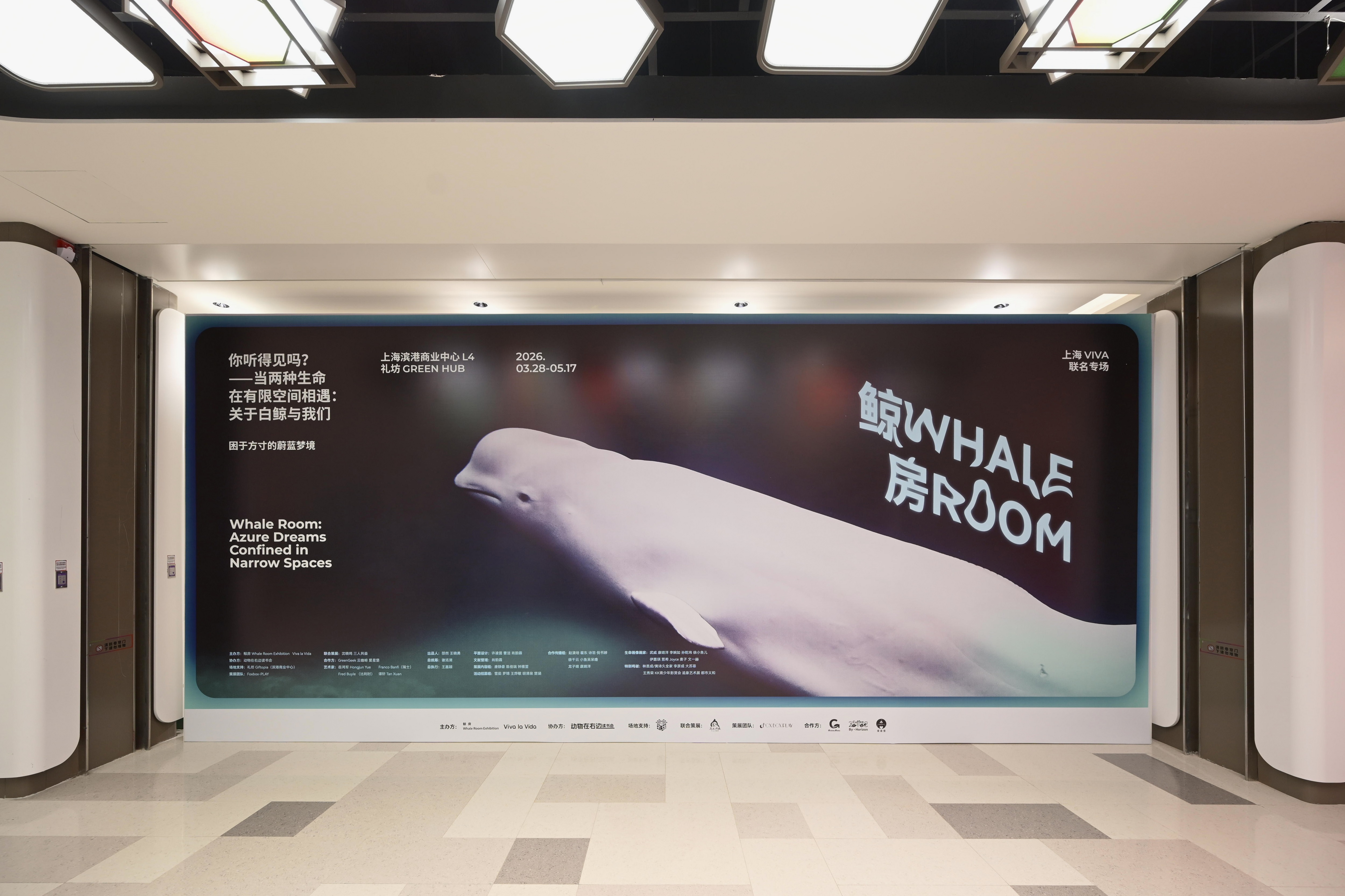 3月28日,由鲸房 Whale Room Exhibition 与 VIVA画出生命(VIVA)联合主办、动物在右边读书会协办、礼坊Giftopia(滨港商业中心)作为场地支持、Foxbox-PLAY策展以及沈晓鸣和三人共益联合策展的《你听得见吗?当两种生命在有限空间相遇:关于白鲸和我们》公益艺术展在上海市滨港商业中心L4 礼坊GREEN HUB正式开幕。本次展览以白鲸生命叙事为核心,通过摄影、影像、空间装置等多元艺术形式,展开一场关于人与白鲸、人与自然的跨物种对话,呼吁社会关注动物保护与生态共生。