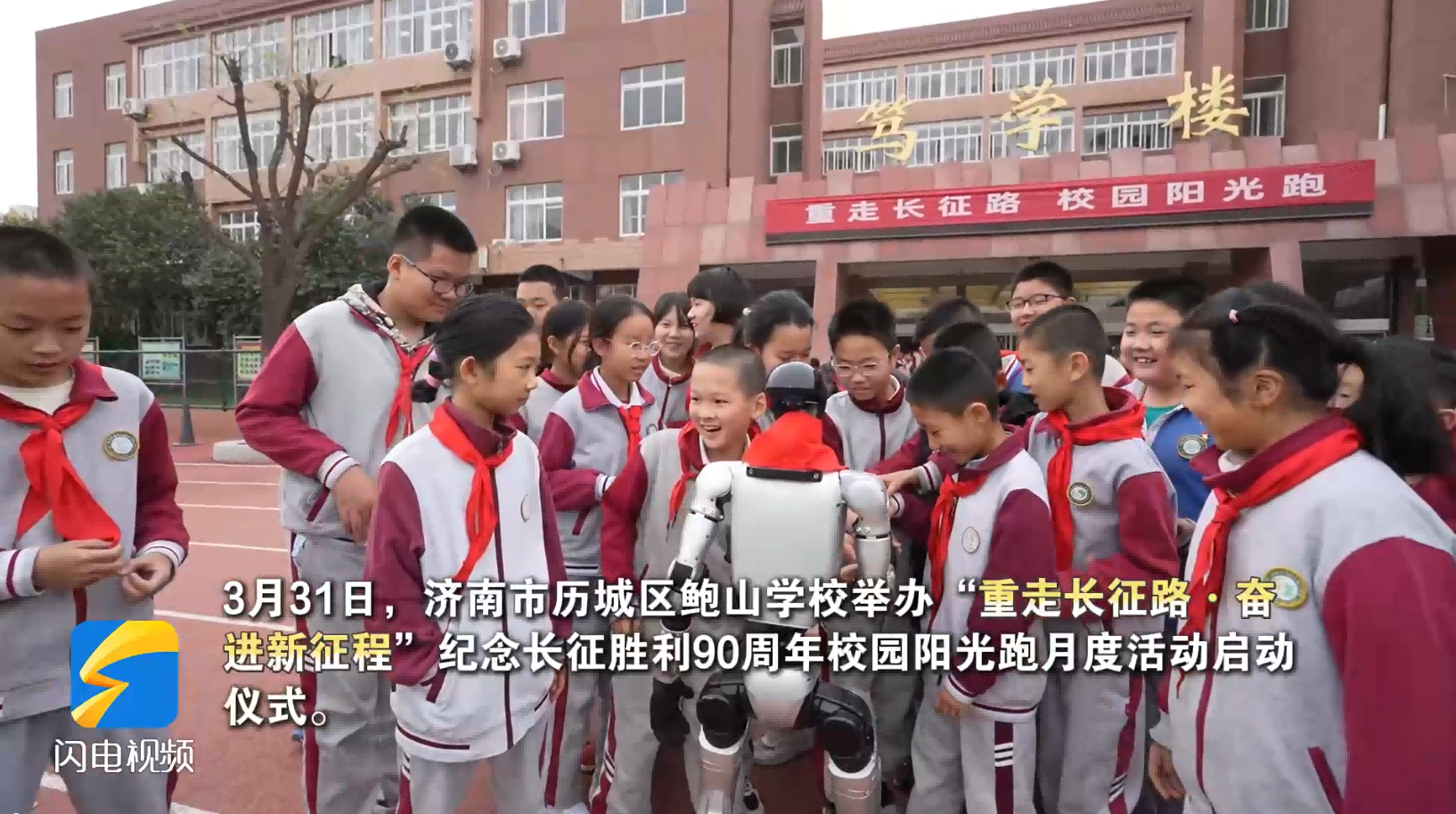 3月31日,济南市历城区鲍山学校举办“重走长征路·奋进新征程”纪念长征胜利90周年校园阳光跑月度活动启动仪式,智能机器人领跑AI操场,全程实时记录学生运动状态,科技赋能校园体育的创新模式,成为学校践行“健康第一”理念的生动实践。