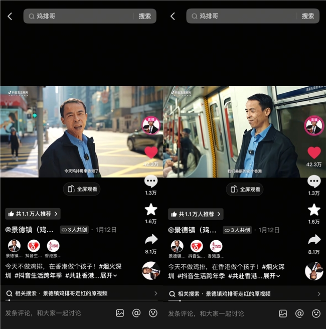 此外,活动期间,明星杜海涛探访华星冰室、SASA等门店,带动相关品牌一季度销售业绩持续增长;人气创作者“鸡排哥”拍摄香港主题短视频,获超42万点赞,#鸡排哥在香港发表年度感言 登上抖音种草榜第三。富有亲和力的内容有效激发消费者赴港兴趣,为香港文旅市场注入宣传动能。