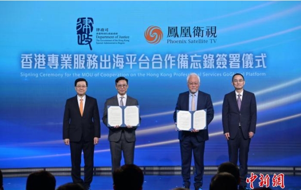 活动中,香港特区政府律政司副司长张国钧与凤凰卫视执行副总裁兼集团财务总监杨家强交换“香港专业服务出海平台”合作备忘录。张国钧表示,很开心与凤凰卫视强强联手,通过发挥彼此优势,共同推动香港专业服务与内地企业出海需求精准对接,让世界看到更多中国企业成功出海的故事。