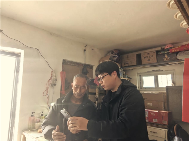 图为卷烟客户经理指导老年商户使用线上订货系统