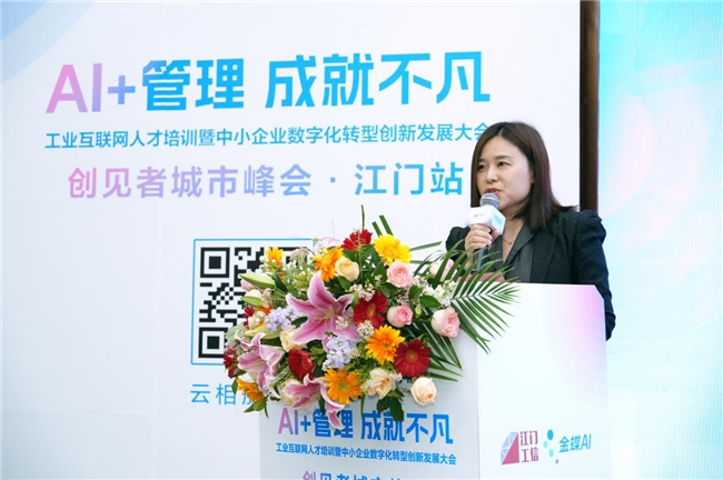 江门市工业和信息化局电子信息与工业互联网科科长王庆出席活动并致辞。他强调,当前江门正全力推进国家级中小企业数字化转型试点城市建设,一系列惠企政策密集落地,旨在降低企业转型门槛、激发创新活力。他鼓励广大企业把握AI技术红利,用好用足政策支持,加速实现降本增效与高质量发展。