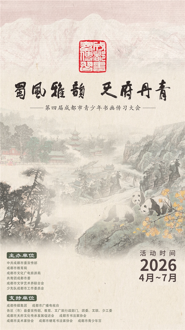 文化传承,薪火相传。书画艺术承载的不仅是笔墨技法,更是中华民族的精神追求和价值观念。第四届成都市青少年书画传习大会的举办,正是要让广大青少年在书画传习中感悟中华文化的博大精深,在笔墨挥洒中涵养家国情怀,在传承创新中增强做中国人的志气、骨气、底气。