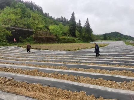 黑白相间的地膜就这样被覆盖在一条条垄体上,等待着健壮烟苗的到来,并为它们“遮风挡雨”。