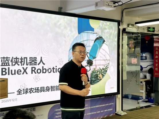 主题分享环节,深圳蓝侠机器人有限公司董事长陈智军以《让农民用得起机器人》为题,聚焦农业智能化领域,分享低成本、高实用性智能机器人在农业生产中的研发应用与落地成果,用技术创新解决农业生产痛点,让智能装备真正普惠农业、服务农民,引发参会嘉宾对AI赋能农业的广泛共鸣。