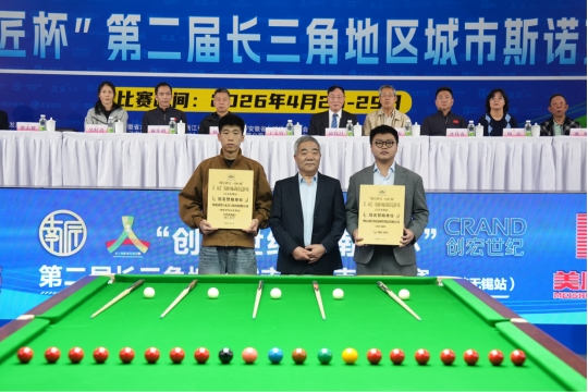 挥杆长三角,逐梦太湖畔。2026年4月25日,“创宏世纪·南匠杯”第二届长三角地区城市斯诺克巡回赛(江苏无锡站)在无锡市体育中心体育馆盛大开幕。来自江浙沪皖三省一市的128名斯诺克高手齐聚太湖之滨,在专业赛场展开为期5天的巅峰对决,共同角逐这一区域标杆性赛事的冠军荣耀。