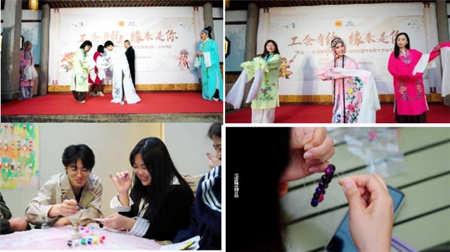 “三条簪太有特色了!以往只听过‘三把刀’的闽都传说,今天亲手制作、佩戴上身,瞬间感受到满满的侠女气质。”闺门旦组的青年职工小林开心地说道,“和小伙伴一起练习台步、编排造型,边交流非遗文化边拍照互动,不知不觉就熟悉起来,工会举办的这场活动太用心,必须给满分!”