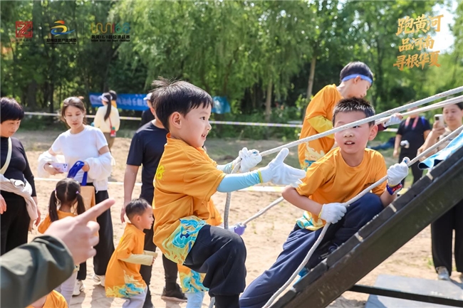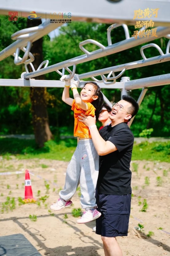 与此同时,“黄河小将”毅力挑战赛的趣味赛道上,孩子们在障碍关卡中欢笑穿越。此起彼伏的加油声、完成任务后的欢呼声交织在一起。这里没有紧张的竞赛,只有亲子间温暖的陪伴、共同成长的喜悦与完成挑战的成就感。