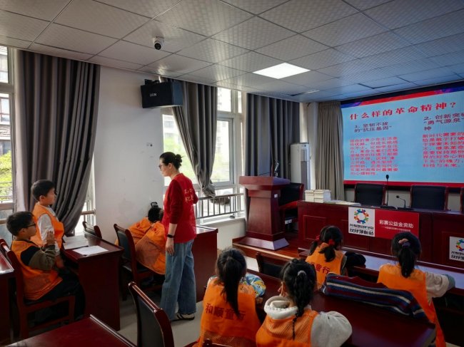 活动伊始,一堂生动的《风雷激荡沙家浜:走进嘉兴地方党史陈列馆》红色思政公开课正式开讲。志愿者老师通过课程讲授、视频观看、互动交流,带领孩子们重温沙家浜地下革命斗争故事,感悟沈如淙手绘党旗的信仰力量,引导大家学习革命先辈坚守信仰、勇于斗争、智慧破局的崇高精神,在心中厚植爱党爱国情怀。