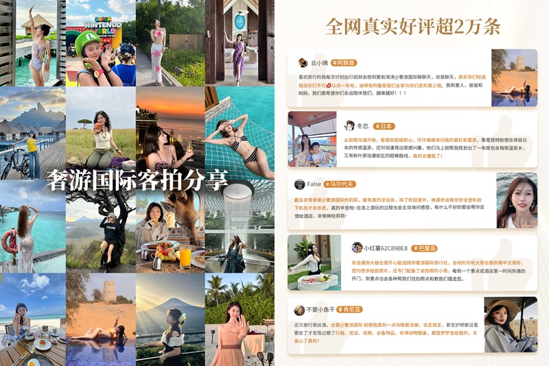 从一个视频的相遇,到一次次复购的信任,再到行业获奖领跑,奢游国际始终在做一件事:以真实为帆,以服务为桨,做每一位客户最信赖的高品质度假管家。