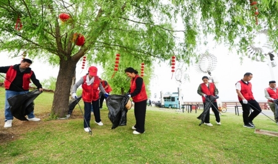这一抹抹靓丽的“志愿红”,所到之处,带走的是各种污物,留下的是干净和美丽。