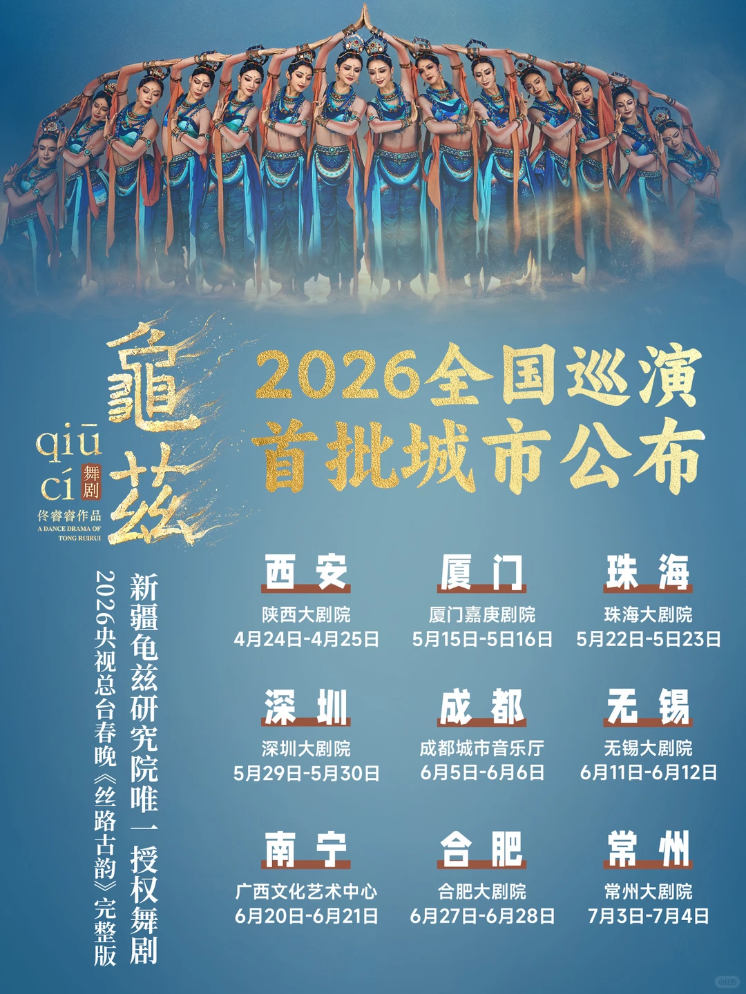 西安站的圆满落幕,是舞剧《龟兹》2026 升级版巡演的重要里程碑。接下来,这部承载着千年龟兹文脉的作品,将继续奔赴全国,陆续登陆厦门、珠海、深圳、成都、无锡、南宁、合肥、常州等城市,带着焕新升级的舞台呈现,把丝路交融的动人故事带给更多观众。期待更多人走进剧场,共赴这场跨越千年的文化之约,在一舞一念之间,感受龟兹文明的璀璨风华。