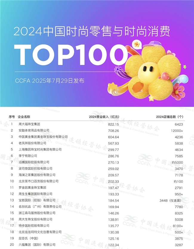 近日,中国连锁经营协会(CCFA)正式公布“2024年中国时尚零售与时尚消费TOP100”榜单,滔搏再次以卓越的经营表现稳居前列,位居榜单第