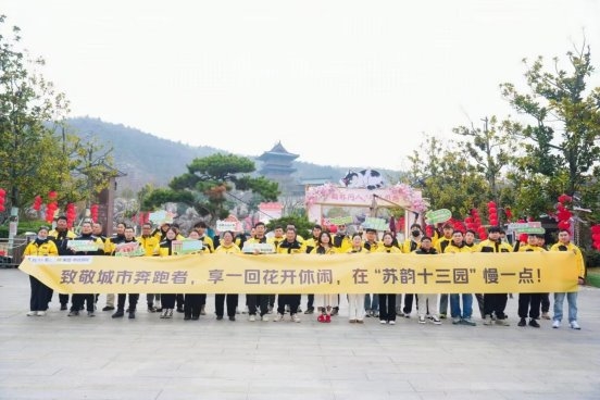 3月27日,南京苏韵十三园举办致敬外卖骑手公益游园活动,邀请一线外卖骑手免费入园赏春,以实际行动关爱基层劳动者,彰显企业社会责任