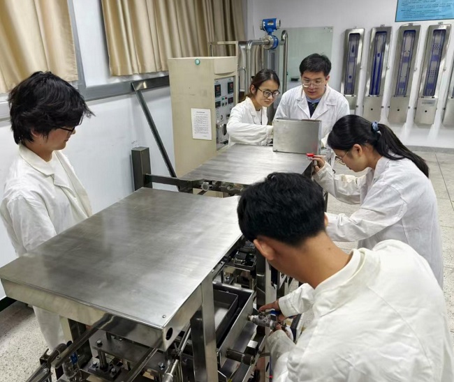 在华侨大学实验室里,一群化工学子正在调试一台特殊的设备——胶囊机。机器里翻滚的淡黄色液体,是他们利用福建沿海地区盛产的海藻提取