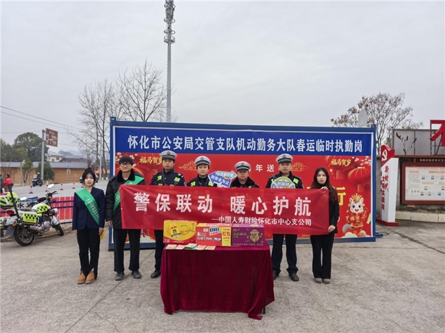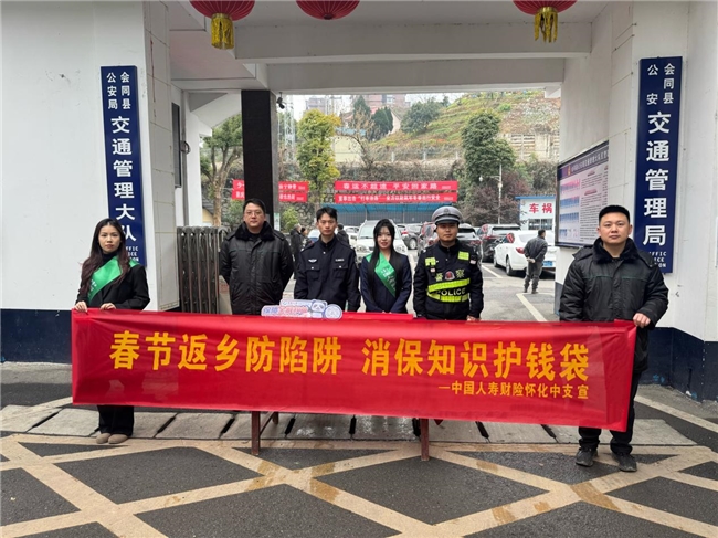 为筑牢春运期间广大旅客及务工人员的财产安全防线,2026年2月11日,中国人寿财险怀化市中心支公司与会同县交警大队联合开展“春节返乡