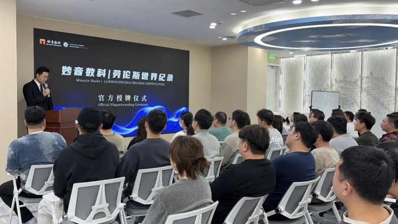 2026年2月2日,妙音数科&劳伦斯世界纪录官方授牌仪式正式举行。仪式现场,劳伦斯世界纪录中国区总裁李海涛先生宣读认证声明,明确“经