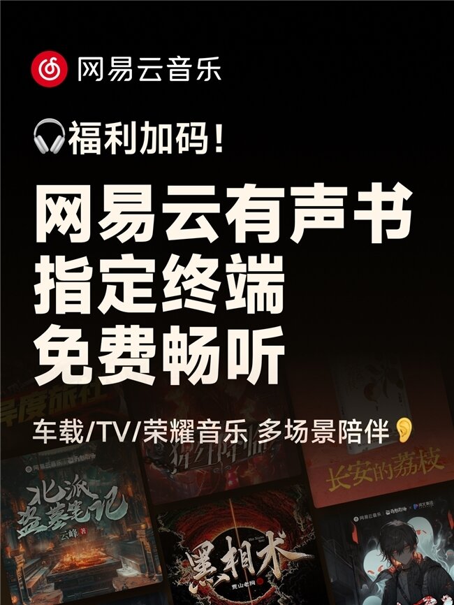 网易云音乐上线“有声书限免听” 车载、TV等终端用户专享