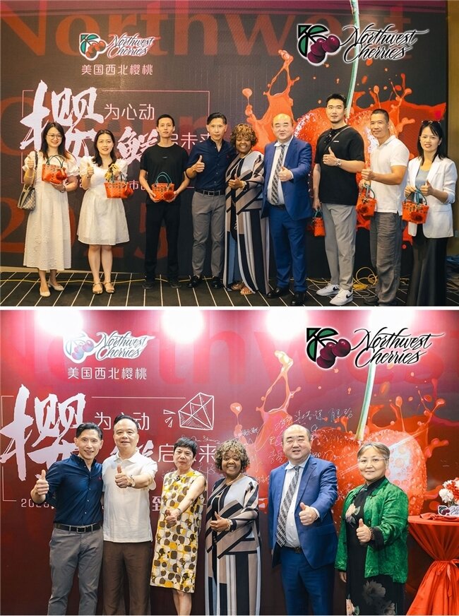 2025初夏,备受瞩目的美国西北樱桃应季而至,在广州富力君悦酒店及上海罗斯福会馆荣耀启幕,隆重举办了“樱为心动,鲜启未来”新品上市品