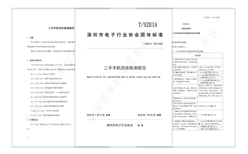 近日,由支付宝发起立项、深圳市电子行业协会批准编制的《二手手机回收检测规范》团体标准正式发布,7月25日开始实施。这项标准旨在解