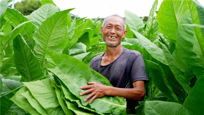 农忙时节,走进湖南资兴州门司镇黄旗洞村,一株株雪茄烟叶翠绿欲滴,像被晨露洗过的翡翠,在阳光下泛着温润的光泽,一行行烟垄整齐划一