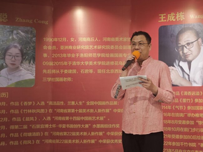 开幕式由书法家曲菁晨主持 2026年4月4日上午10时,张聪、王成栋作品展在海淀北部文化中心三层展厅正式开幕。本次展览聚焦两位画家的