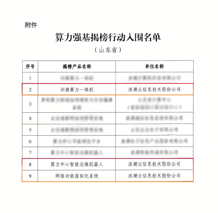 为夯实算力网络发展底座,加快创新技术和产品应用,近日,工信部正式公布算力强基揭榜行动入围名单,浪潮云提报的“训推算力一体机”“
