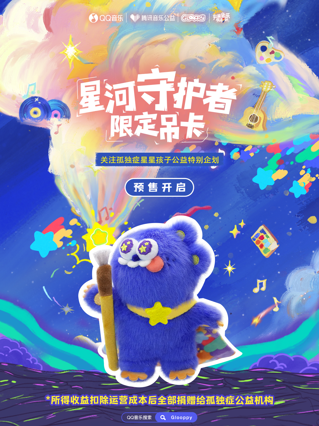 近日,腾讯音乐潮流厂牌BOOM STAGE旗下的Glooppy,联合腾讯音乐公益推出全新限定吊卡——Glooppy“星河守护者”,关注孤独症患儿,为
