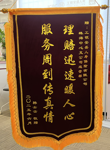 锦旗背后的故事:工银安盛人寿珠海中支30分钟极速理赔获赞誉