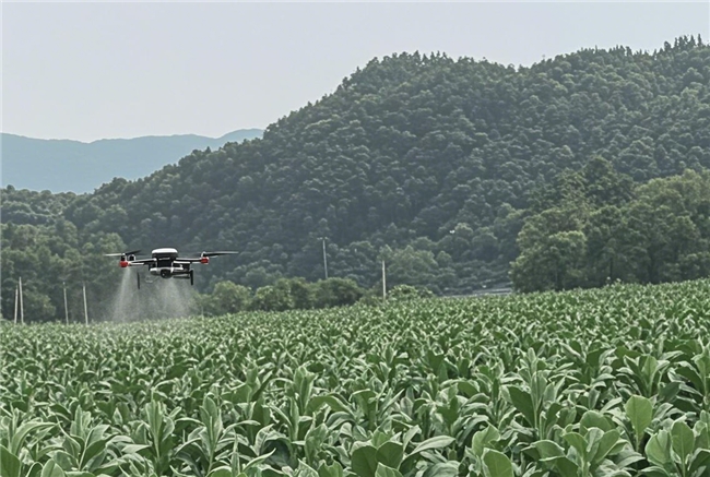 “嗡——” 清晨,湖南省张家界市慈利县烟田的上空,一架植保无人机轻盈盘旋,精准地将药雾洒向翠绿的烟叶;不远处,智能烤房的指示灯