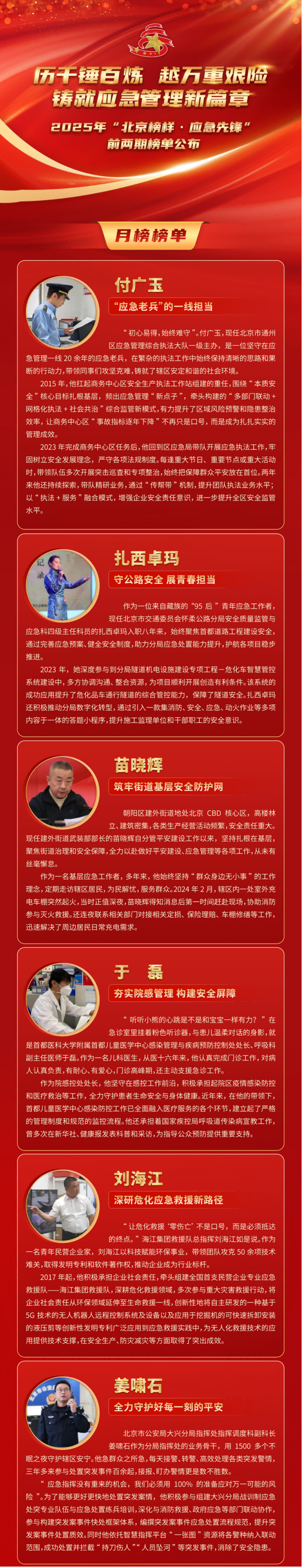 ——2025年“北京榜样·应急先锋”前两期榜单公布 有这样一个群体,从幕后守护到一线救援,从隐患排查到救灾抢险,从应急备战到创新攻