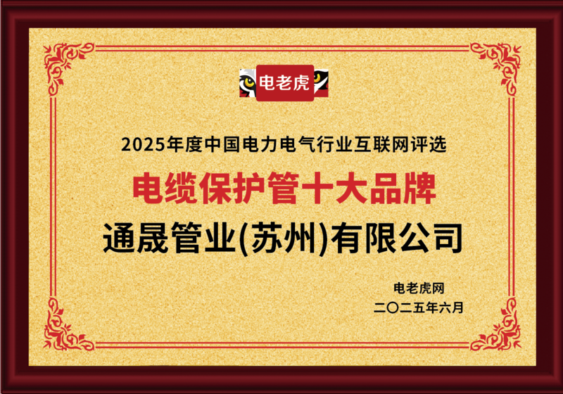 近日,通晟管业(苏州)有限公司凭借在塑料管道领域的突出表现,荣获“电缆保护管十大品牌”称号,彰显了企业在技术研发、产品质量及市场