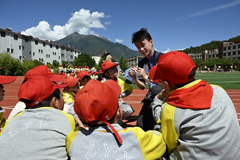 7月10日下午,林芝市第一小学的操场上传来孩子们欢快的笑声,贺蕊、多吉加措两位来自西藏自治区的民族生,正带着一小的学生们制作属于